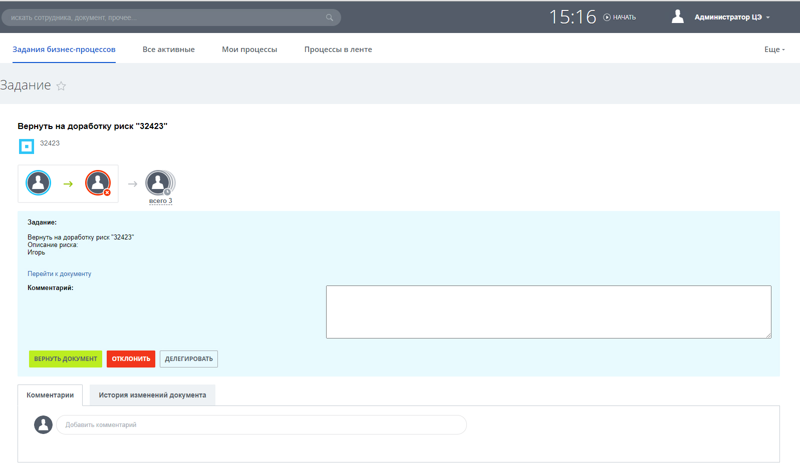 Сделать возможность, чтобы к каждому риску можно создавать задачи и подзадачи на решение и проведения необходимых мер, а также создавать комментарии для получения полной информации о ходе принятых решений и мероприятий.