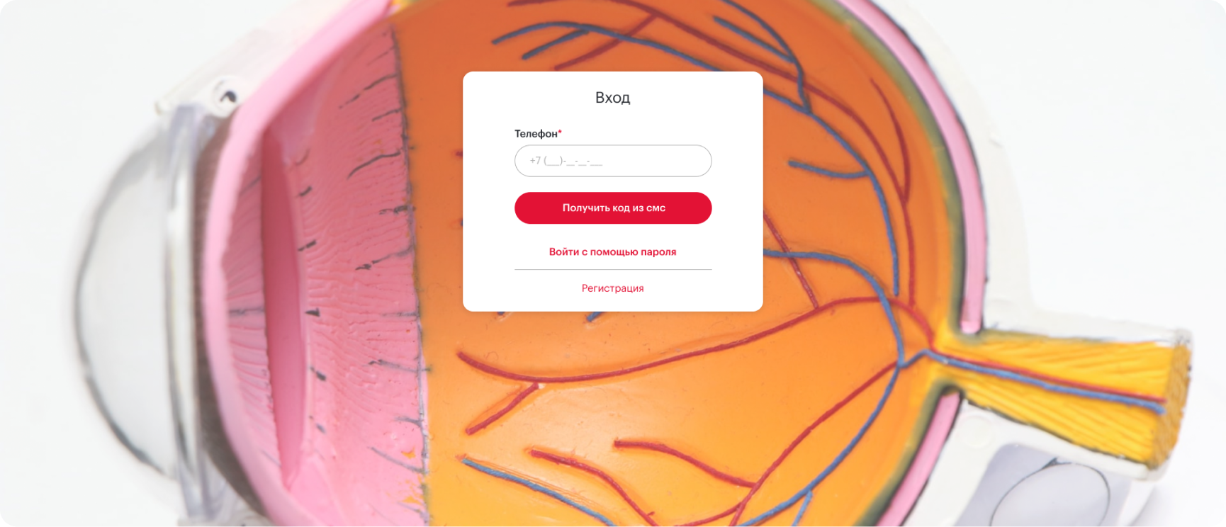 Авторизация происходит по телефону и вводу кода, который пришел на телефон.