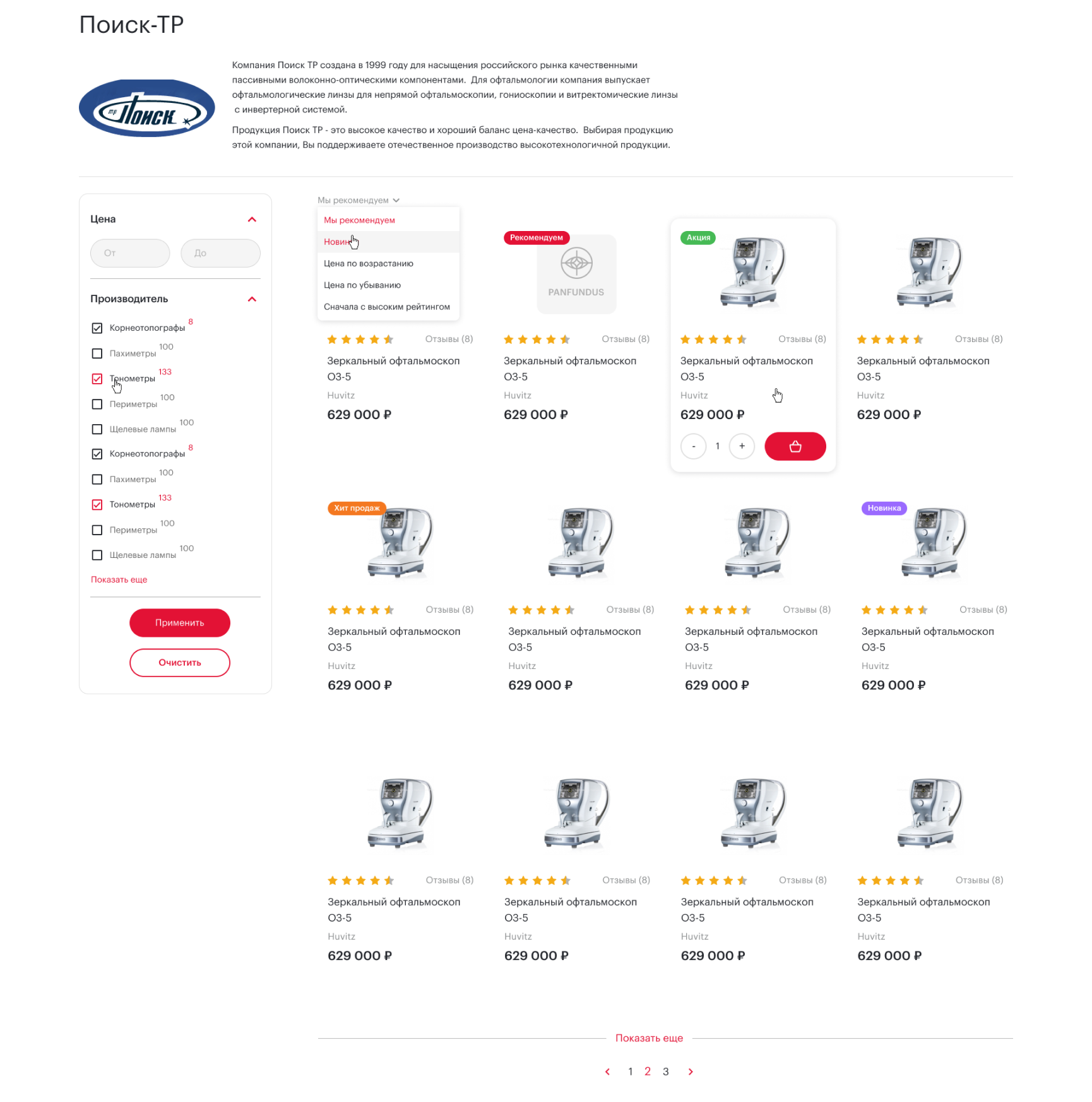 В каждой категории товаров разработан фильтр с настройкой: