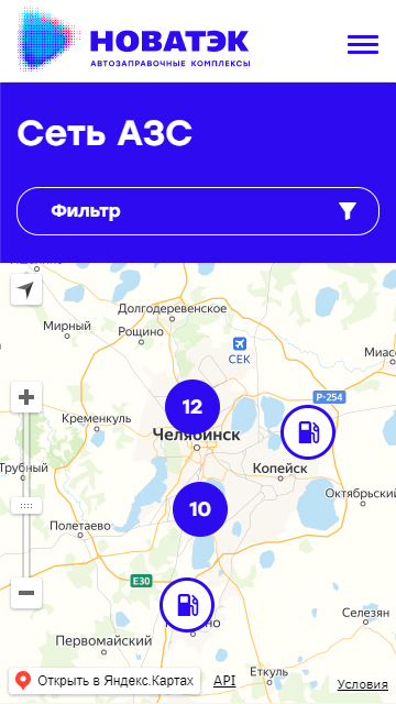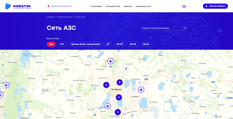 • Создание на сайте интерактивных карт с поиском партнерских центров и заправочных станций