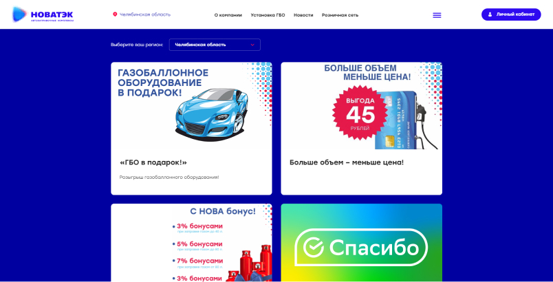 Новый сайт позволяет получить всю необходимую информацию физическим и юридическим лицам по бонусным картам через личный кабинет, новым пользователям узнать про карты лояльности, найти места заправок по городам, а также просчитать выгоду перехода с бензина на газ, за счет калькулятора выгоды и есть возможность стать партнером компании.
