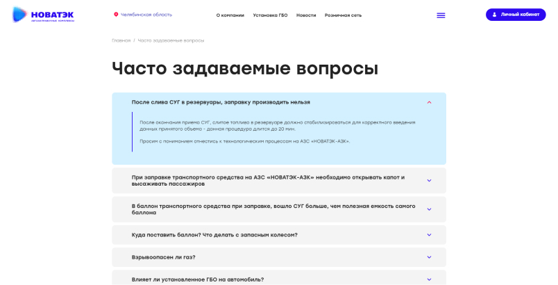 Разработали страницу со списком вопросов, которые чаще всего возникают у пользователей для того, чтобы можно было быстро получить ответы на них и не было необходимости звонить на горячую линию компании или ехать до ближайших офисов.